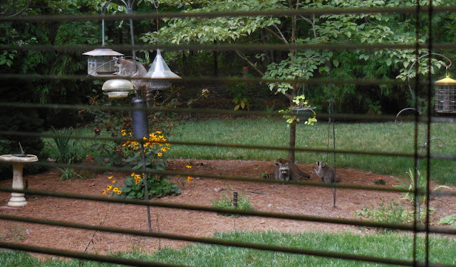 Wow! Raccoons! I don't know if that is good news or bad news. I'd sure like to SEE a few raccoons but I hear that can be pretty destructive. Hope they stay out at the bird feeder.